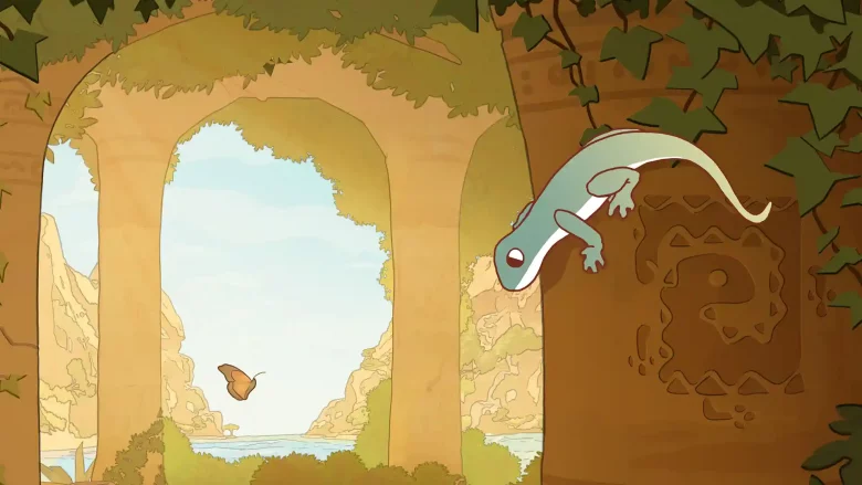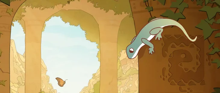 It’s so satisfying seeing a ruin on the top of a cliff, and just climbing over to see what secrets it holds. Maybe it’ll have a hidden chamber you have to open with a lever, which means following a long winding wire across rocky surfaces until you find it. Pretty quickly you’ll end up in a room full of statues and texts that give you objectives you can track on your map, so you can start your quest to awaken the titular Gecko Gods. If you’d rather just wander around eating butterflies though nobody is going to stop you.