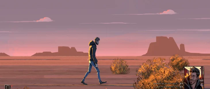 Aesthetically, Rue Valley is right up my street. The comic book style is gorgeous, with bold lines and a slightly subdued colour palette which reflects the narrative well. It’s full of little flourishes, like the page turn effect when you transition between scenes, or Eugene’s walking animation changing slightly depending if he’s tipsy, injured or just depressed. I loved the audio too, although it felt a bit too restrained in its use at times. The lonely country music fit the game perfectly, often being nothing more than a guitar with a bit of bass that felt isolating and mysterious. I just wish I’d heard more of it.